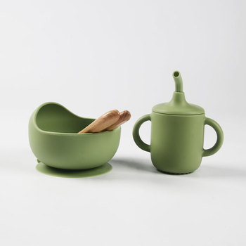 Bebé tazón de silicona plato cuchara tenedor taza babero silicona babero Niño